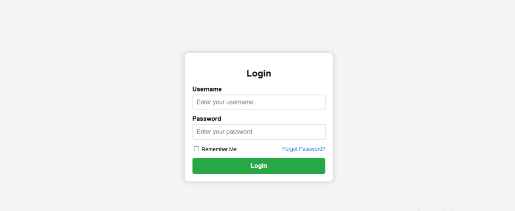 To make the login page visually appealing and responsive, we’ll use CSS. The form will be centered, have a modern look, and be fully responsive on all devices.